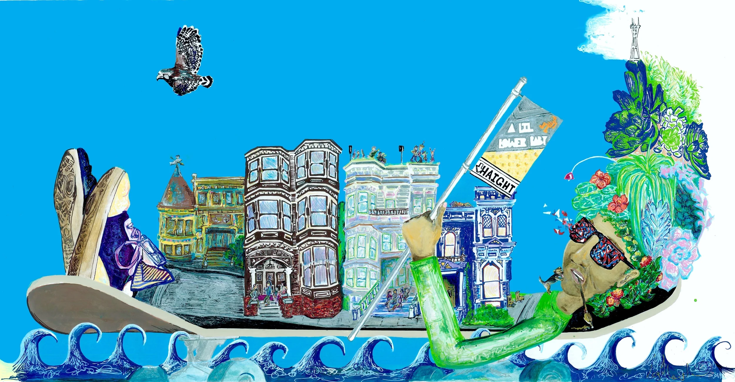 "lower Haight" acrylic paint and paint pen 2014 $700 (framed)